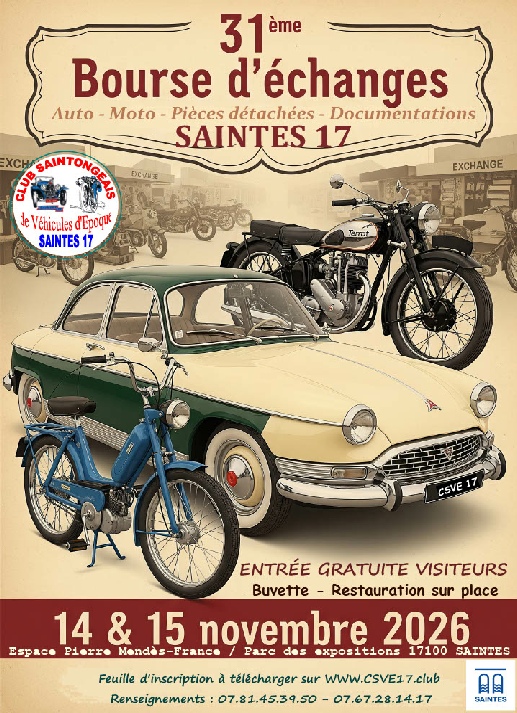 Club Saintongeais de Véhicules d'Époque - CSVE, 31 rue Cormier, 17100 Saintes |