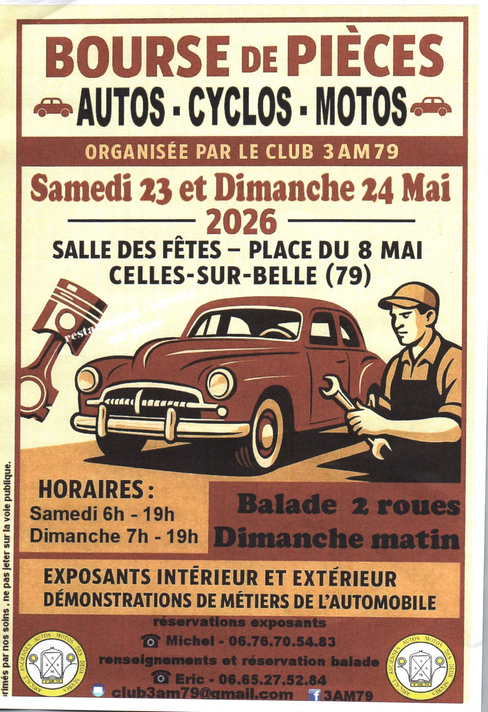 .Autos, motos, cyclos, pièces détachées, documentation. Rv au parc des expositions, espace Mendès-France. Inscription obligatoire.